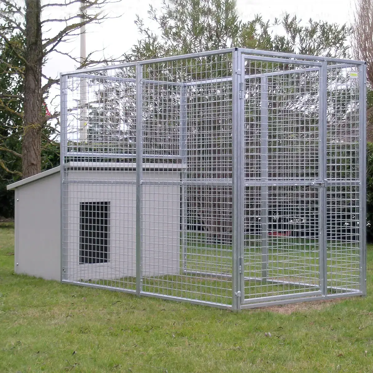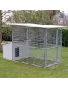 - zona día realizada con paneles de malla, malla de 5 x 5 cm, alambre de 3,9 mm, galvanizado en caliente; completo con puerta con cerrojo de candado (se puede ampliar agregando más paneles)